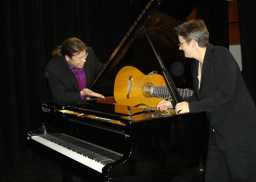 Gitarre und Klavier – welch ungewöhnliche, reizvolle und stimmige Kombination, gespielt von der Konzertpianistin Gabriele Schinnerling und dem Gitarrenvirtuosen Andreas Hiller. Wer es nicht erlebt hat, verpasst neue Klangwelten und wunderbare Werke, angefangen beim Divertimento von Carl Maria von Weber. Gleich zwei Kompositionen sind zu hören vom Professor der Wiener Musikakademie Ferdinand Rebay, der für seine gitarrenbegeisterte Nichte viel geschrieben hat. Die Stücke lassen erahnen, dass die Nichte hochversiert gespielt haben muss!